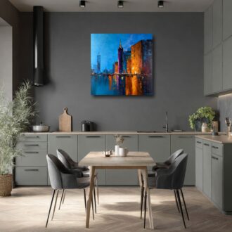 • Nowoczesny obraz miasto jako obraz do salonuNowoczesny obraz miasto z grubą fakturą farby 80x80 cm