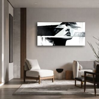 Czarno biały obraz portret 120 x 60cm – nowoczesna abstrakcja 2376A