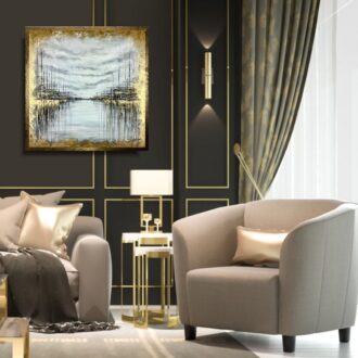 • złoty obraz, obraz w złotej ramie, obraz do salonuElegancki obraz, szary obraz, duży obraz do salonu, poziomy obraz, obraz w ramie