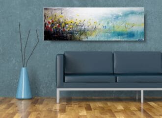 • Duży obraz kwiaty łąka, Duży obraz kwiaty, pastelowa łąka, niebieski obraz, obraz z żółtymi kwiatami, delikatny obraz, kwiaty obrazy, obraz łąka kwiatowa, obraz na ścianie, kwiaty obrazy, obraz jednoczęsciowy