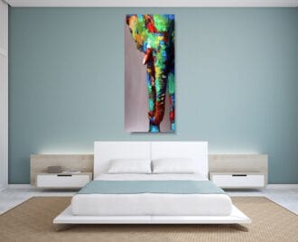 • Obraz na płótnie ręcznie malowany słoń, obraz ręcznie malowany na płótnie słoń, obraz pionowy, obraz pionowy do salonu, obraz słoń, kolorowy słoń, obrazy zwierząt, obrazy ze zwierzętami, obrazy zwierząt na płótnie