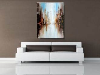 • Obraz miasto w nowoczesnym salonieObraz miasto ręcznie malowany – nowoczesna architektura
